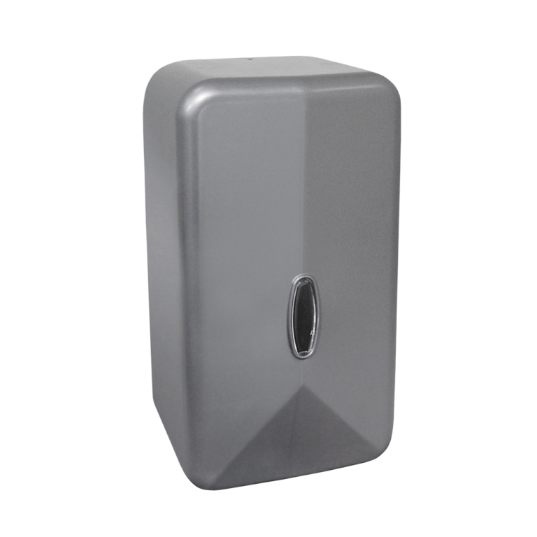 Dispenser plástico de parede para papel higiênico interfolhas.