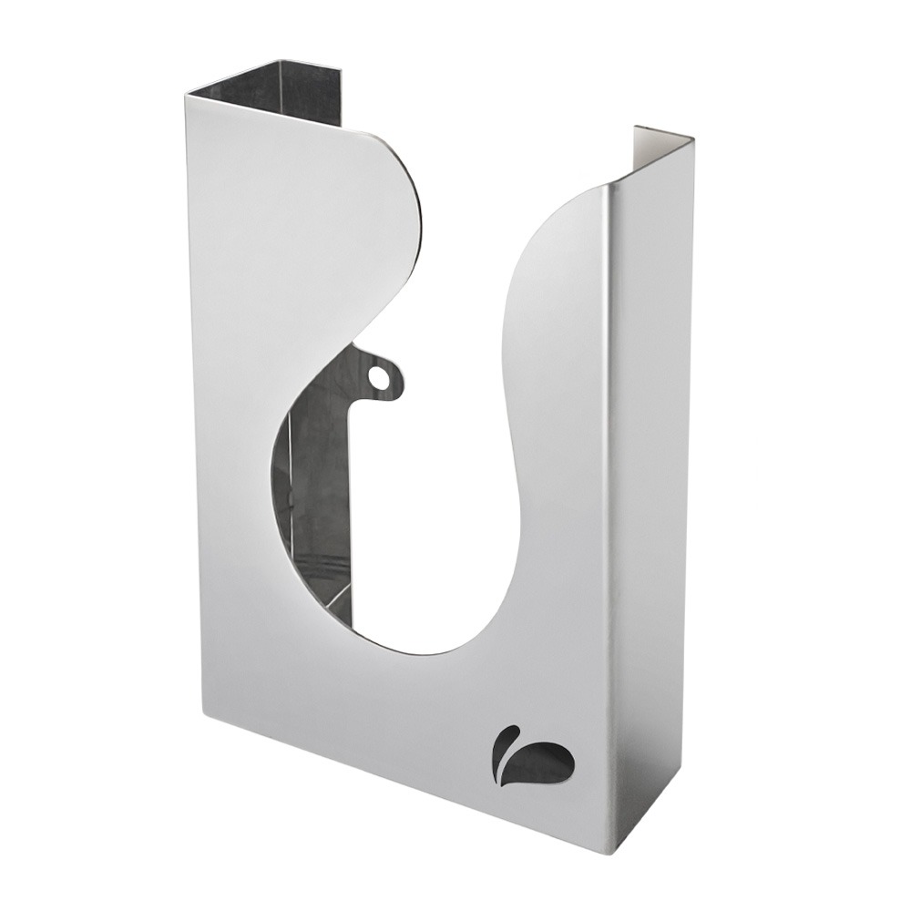 Suporte de parede em aço inox para caixa de sacos coletores para absorvente feminino.